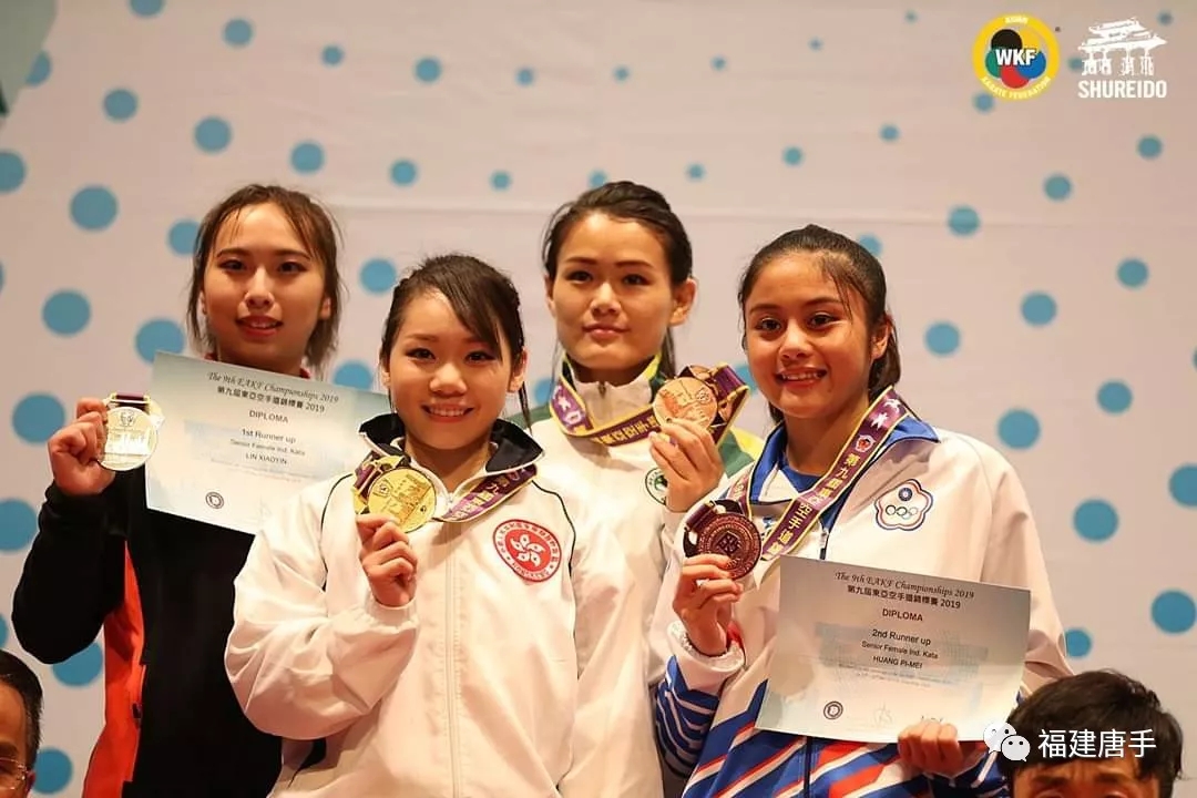 2019年5月9日-12日在香港舉行的第9屆東亞空手道錦標(biāo)賽中,福建拓??帐值狸?duì)選手陳曄和北京體育大學(xué)隊(duì)友夏婷婷、張碧丹代表中國(guó)隊(duì)決賽Vs中華臺(tái)北隊(duì),奪取青年女子團(tuán)體型冠軍。